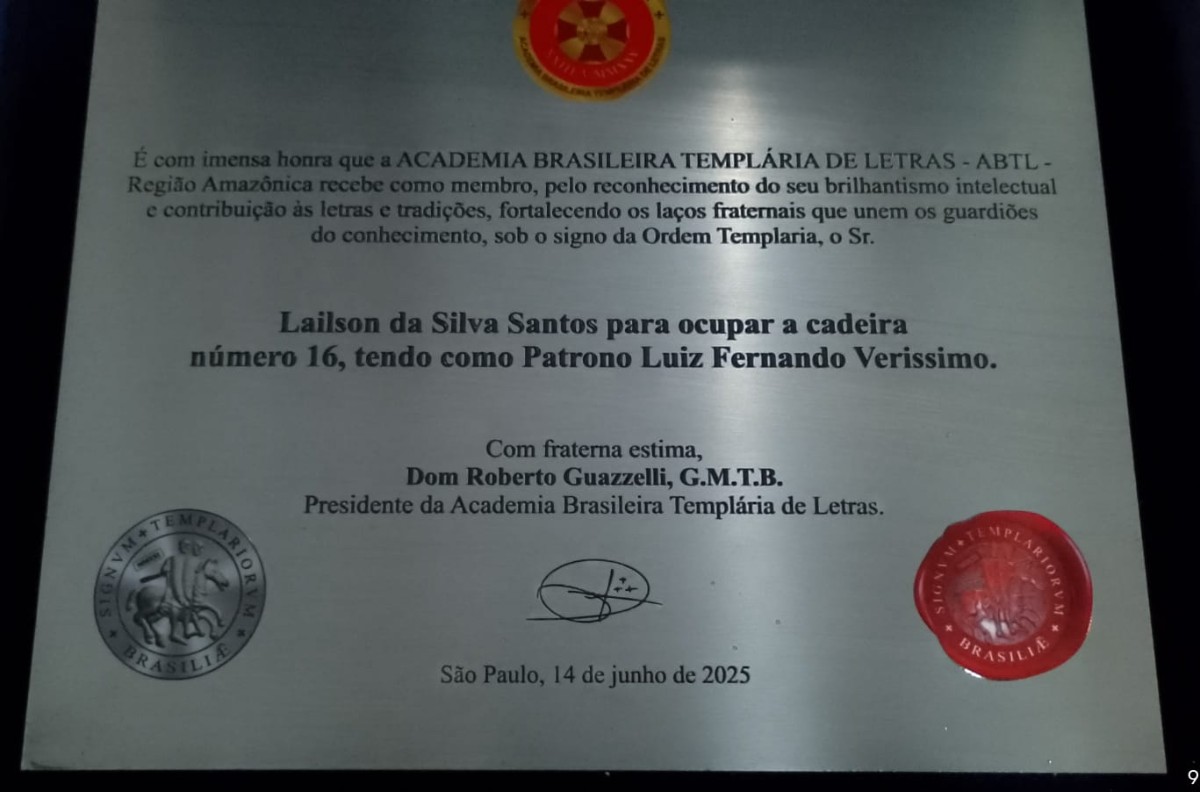 O ufólogo e escritor Laílson Santos, recebe título de ( COMENDADOR E EMBAIXADOR DA PAZ) da OMDDH.